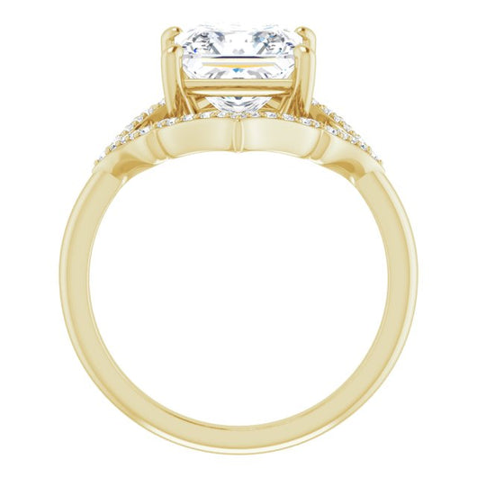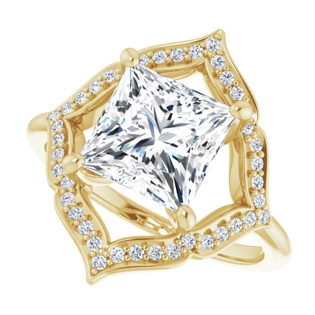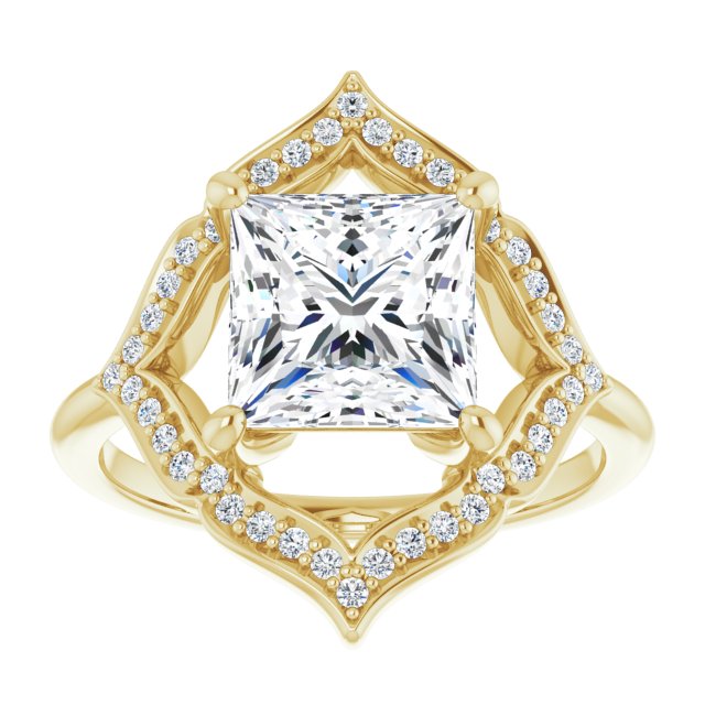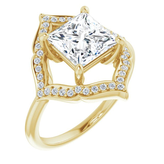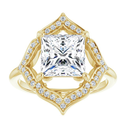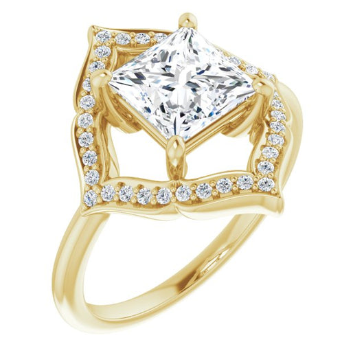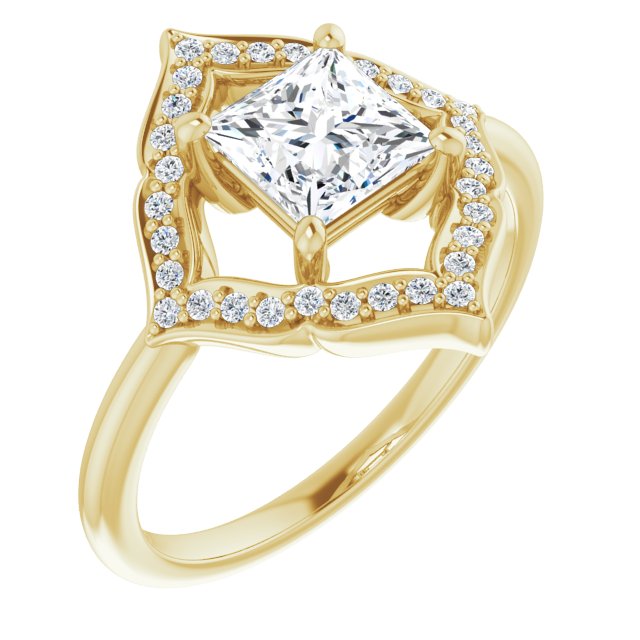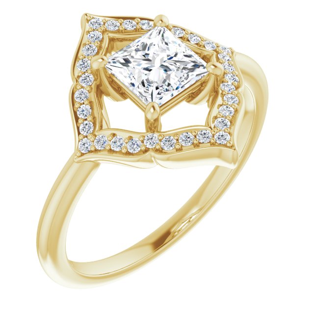 10K Yellow Gold Customizable Princess/Square Cut Style with Artistic Equilateral Halo and Ultra-thin Band