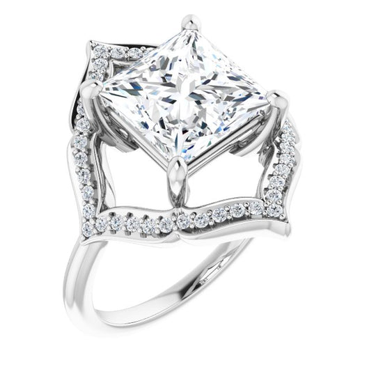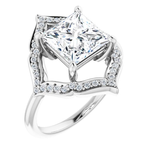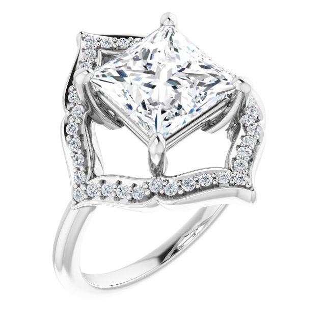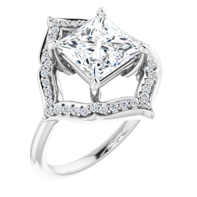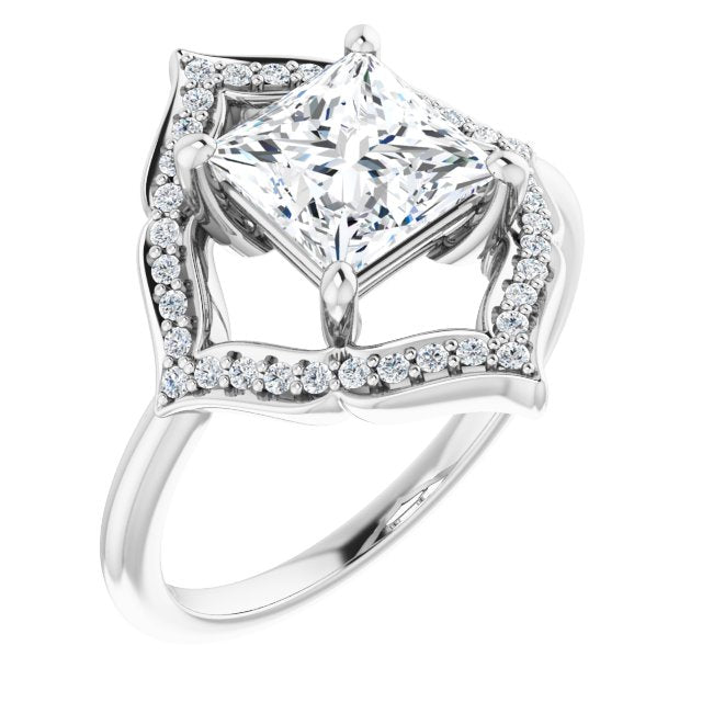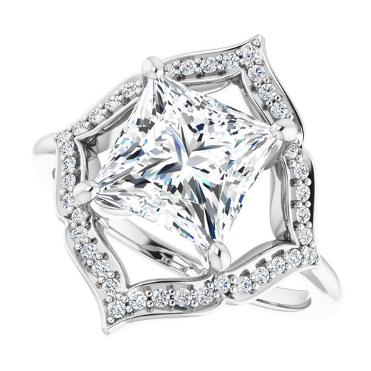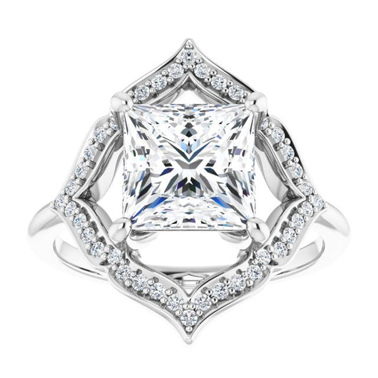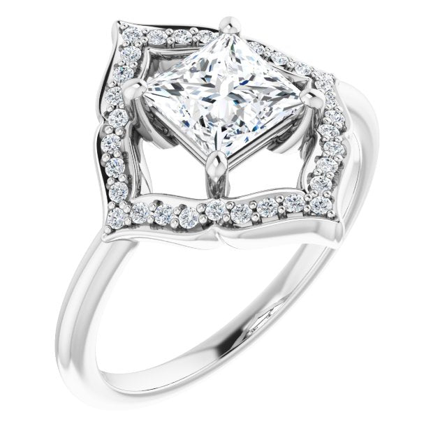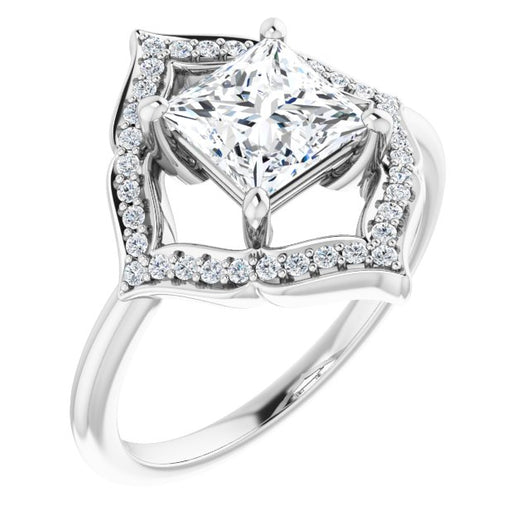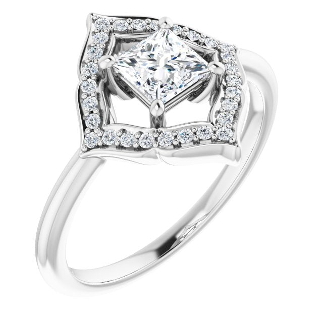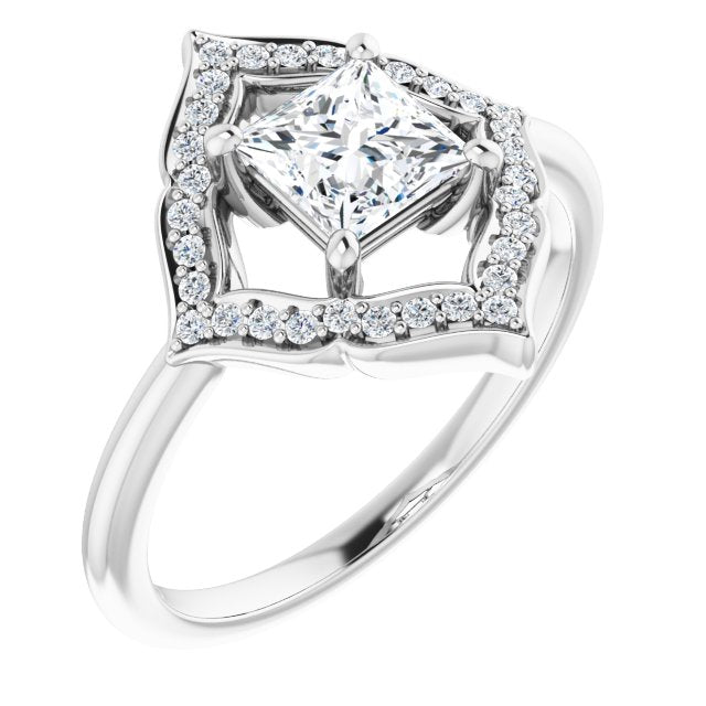 10K White Gold Customizable Princess/Square Cut Style with Artistic Equilateral Halo and Ultra-thin Band