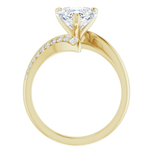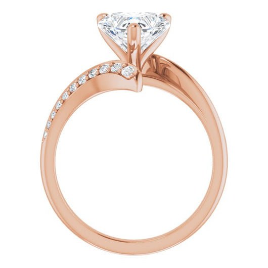 * Your ring’s total carat weight (TCW), band width, weight in grams, and/or number and size of accent, pavé, or halo stones will vary up or down depending on your choice of customizable center stone shape and size, precious metal type, and finger ring size via the drop-down options provided.