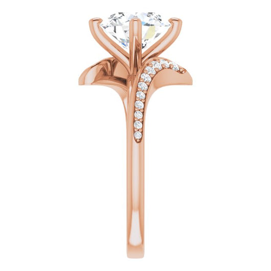 * Your ring’s total carat weight (TCW), band width, weight in grams, and/or number and size of accent, pavé, or halo stones will vary up or down depending on your choice of customizable center stone shape and size, precious metal type, and finger ring size via the drop-down options provided.