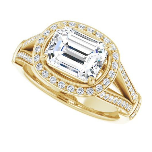Center Stone Shape: Radiant Cut (as pictured with Emerald Cut). See this customizable ring set with other available center stone shapes here: customize setting.