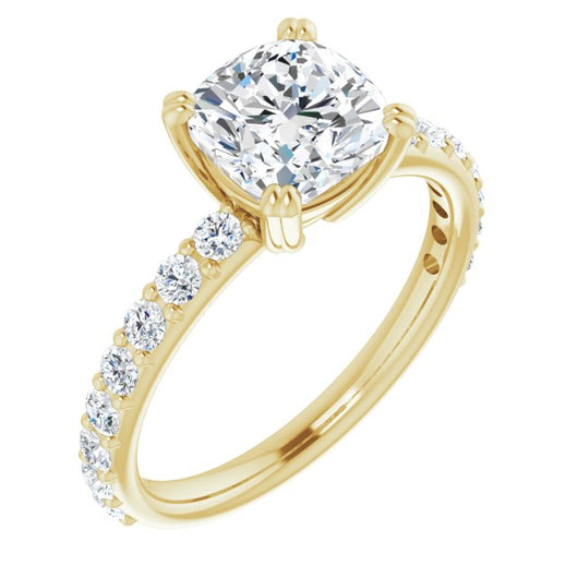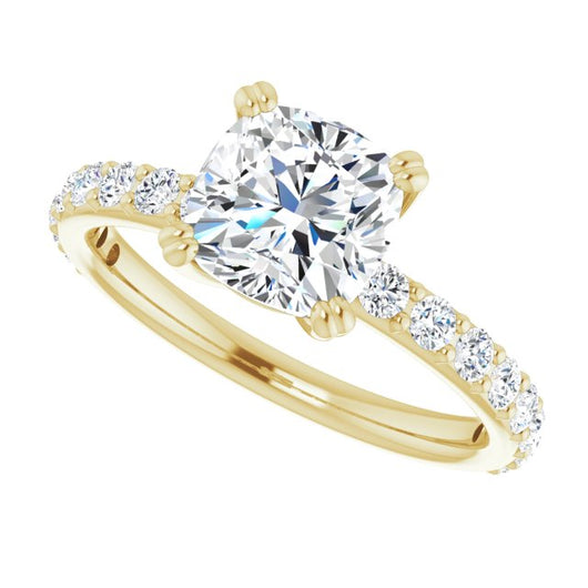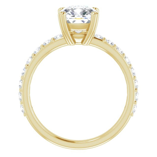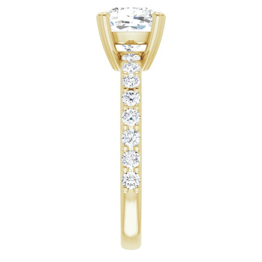 10K Yellow Gold Customizable Cushion Cut Design with Large Round Cut 3/4 Band Accents
