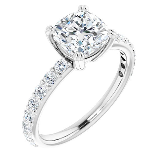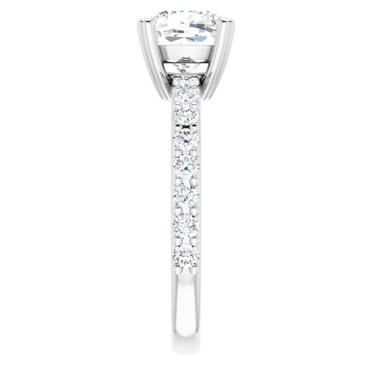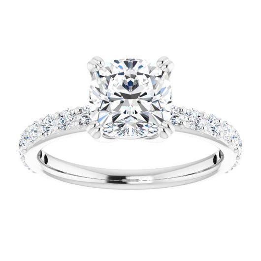 10K White Gold Customizable Cushion Cut Design with Large Round Cut 3/4 Band Accents