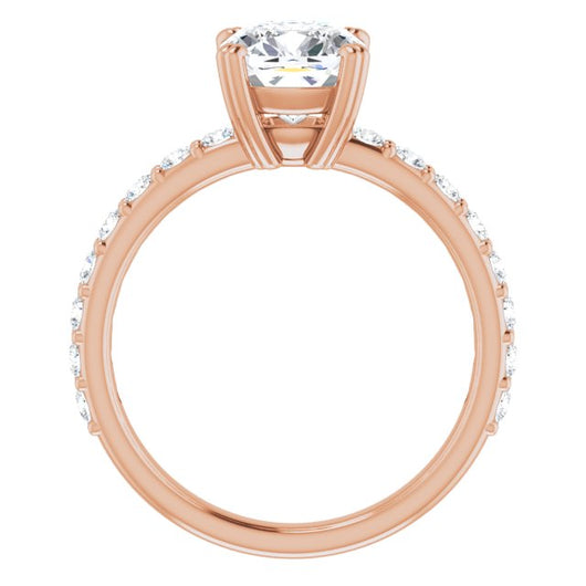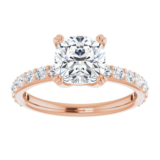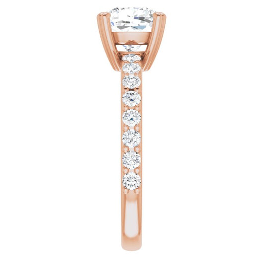 10K Rose Gold Customizable Cushion Cut Design with Large Round Cut 3/4 Band Accents