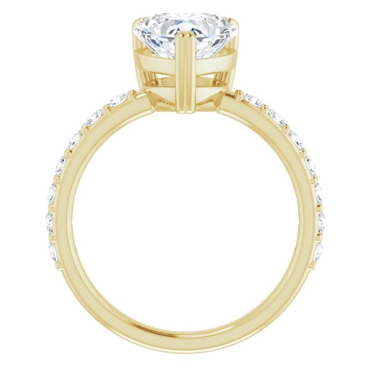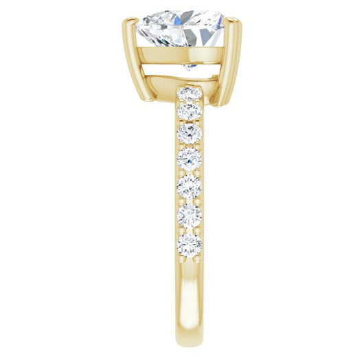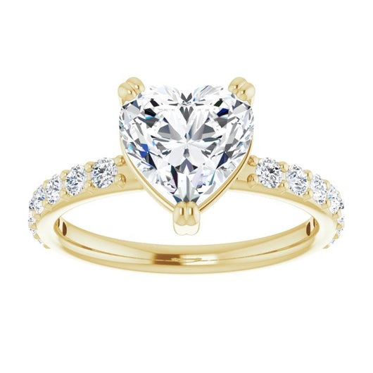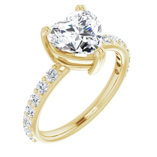 10K Yellow Gold Customizable Heart Cut Design with Large Round Cut 3/4 Band Accents