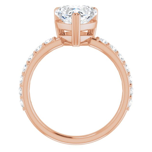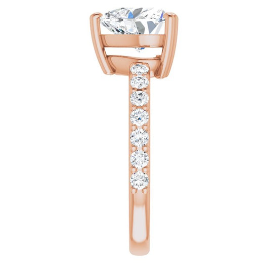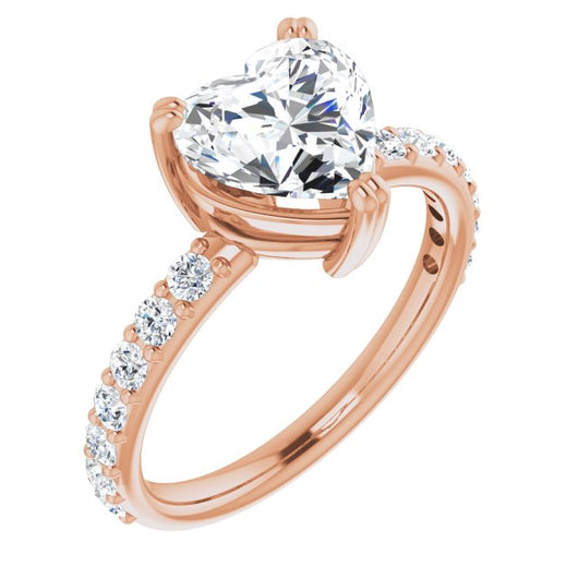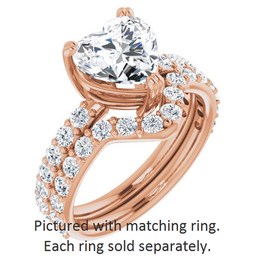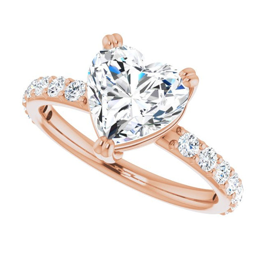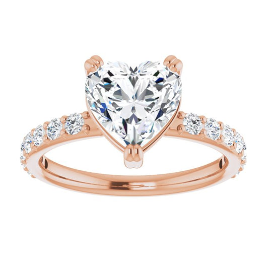 10K Rose Gold Customizable Heart Cut Design with Large Round Cut 3/4 Band Accents