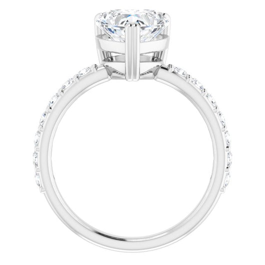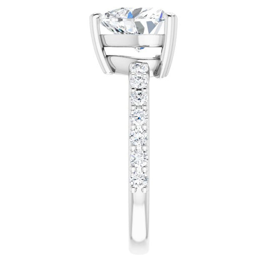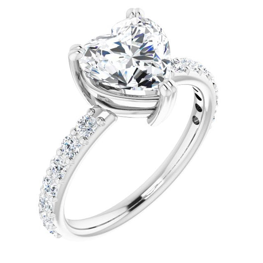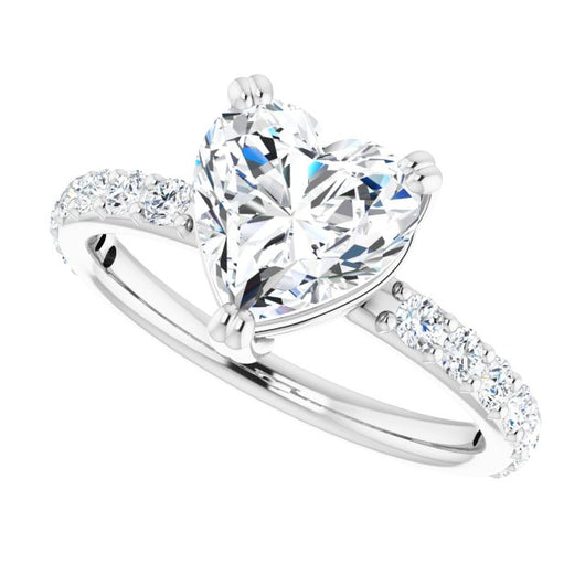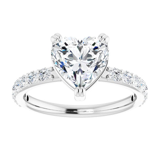 10K White Gold Customizable Heart Cut Design with Large Round Cut 3/4 Band Accents