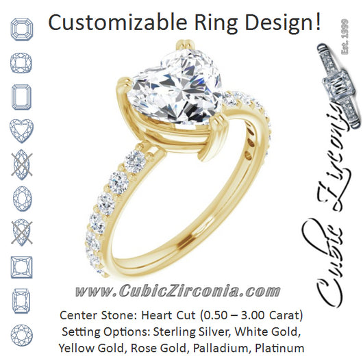 Cubic Zirconia Engagement Ring- The Chandita (Customizable Heart Cut Design with Large Round Cut 3/4 Band Accents)