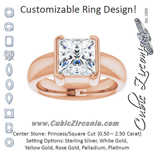 Cubic Zirconia Engagement Ring- The Charlotte (Customizable Bezel-set Princess/Square Cut Solitaire with Thick Band)