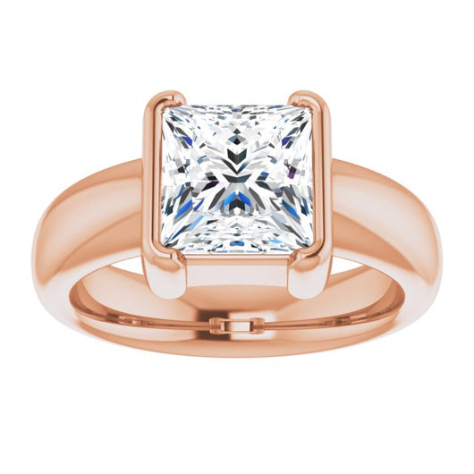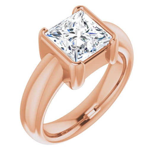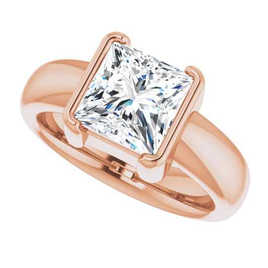 10K Rose Gold Customizable Bezel-set Princess/Square Cut Solitaire with Thick Band