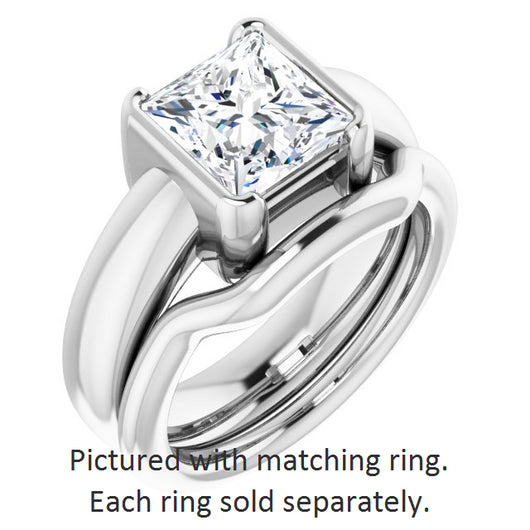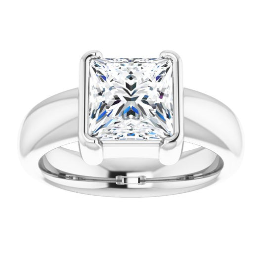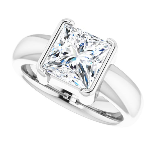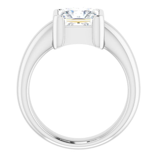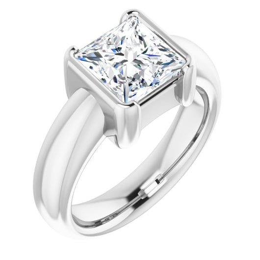 10K White Gold Customizable Bezel-set Princess/Square Cut Solitaire with Thick Band