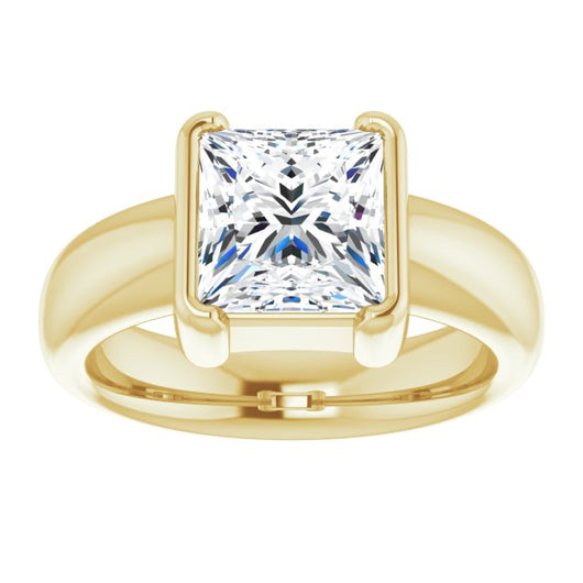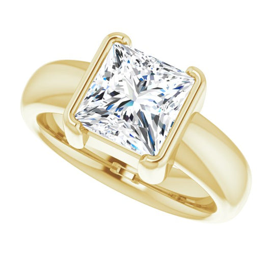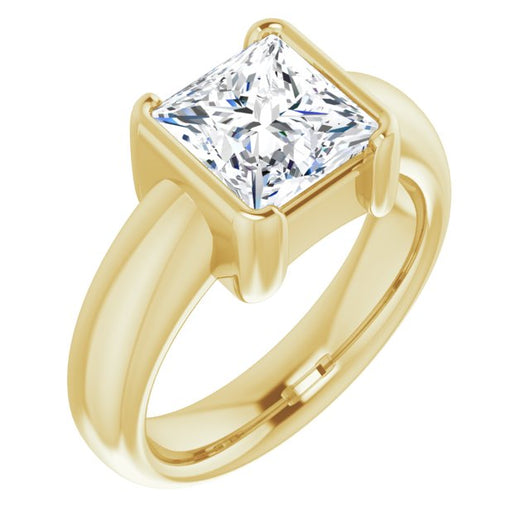 10K Yellow Gold Customizable Bezel-set Princess/Square Cut Solitaire with Thick Band