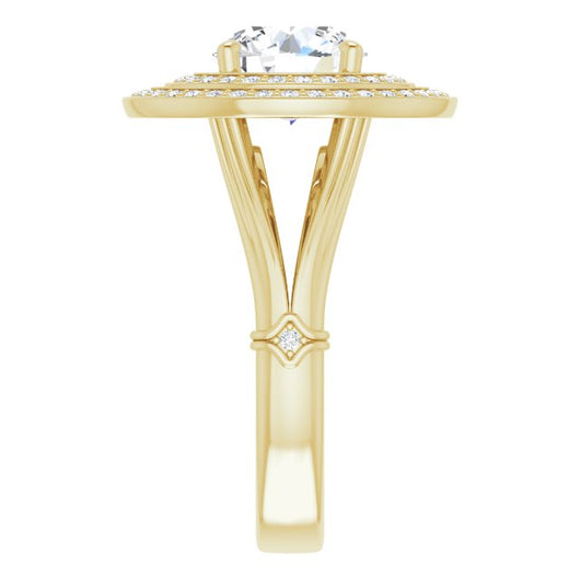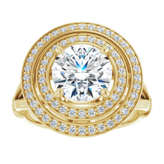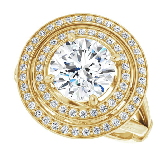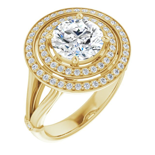 10K Yellow Gold Customizable Cathedral-set Round Cut Design with Double Halo, Wide Split Band and Side Knuckle Accents