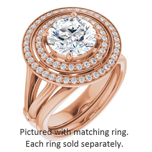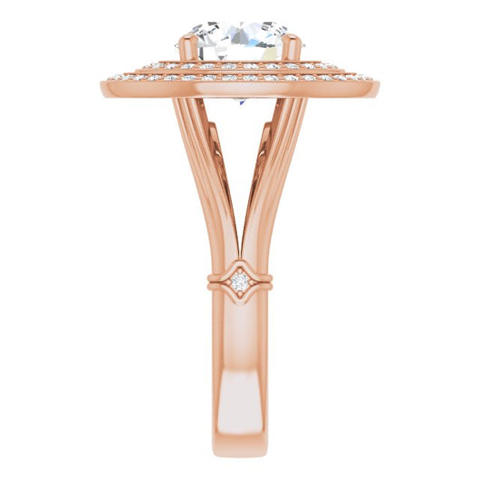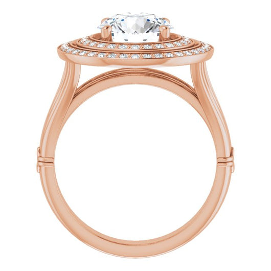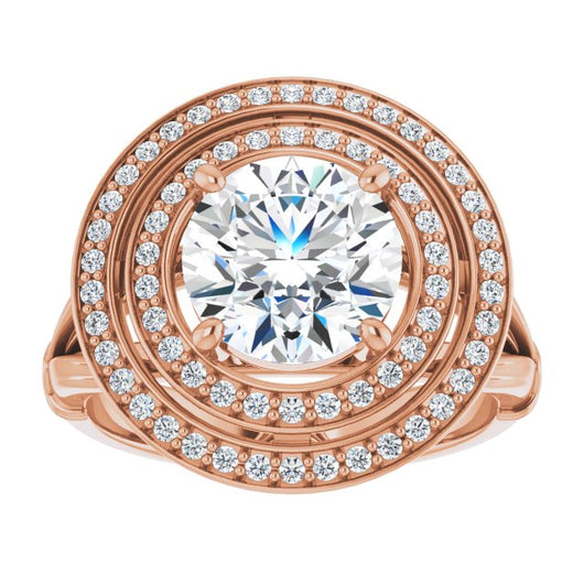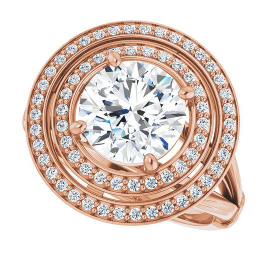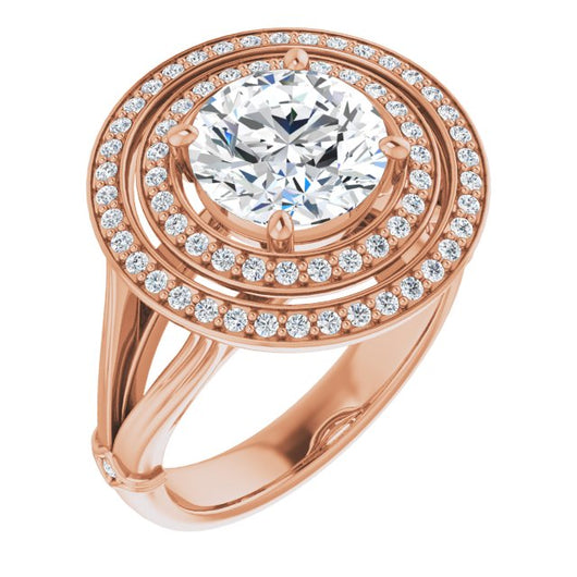 14K Rose Gold Customizable Cathedral-set Round Cut Design with Double Halo, Wide Split Band and Side Knuckle Accents