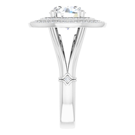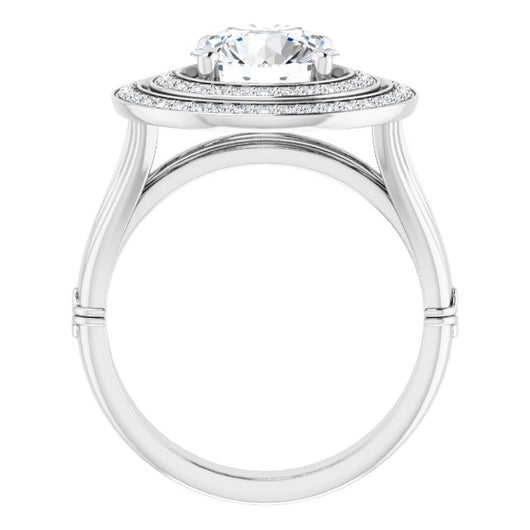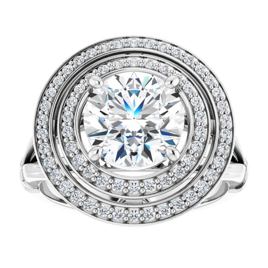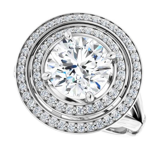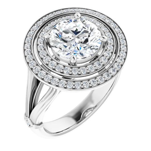 18K White Gold Customizable Cathedral-set Round Cut Design with Double Halo, Wide Split Band and Side Knuckle Accents