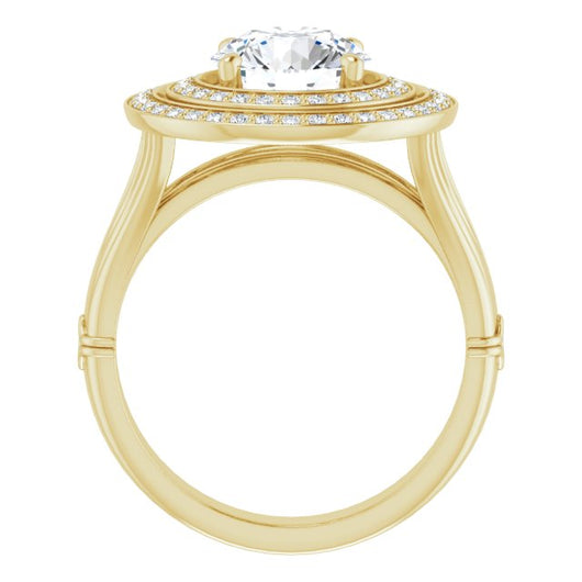 14K White & Yellow Gold Customizable Cathedral-set Round Cut Design with Double Halo, Wide Split Band and Side Knuckle Accents