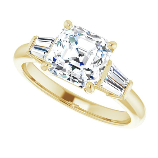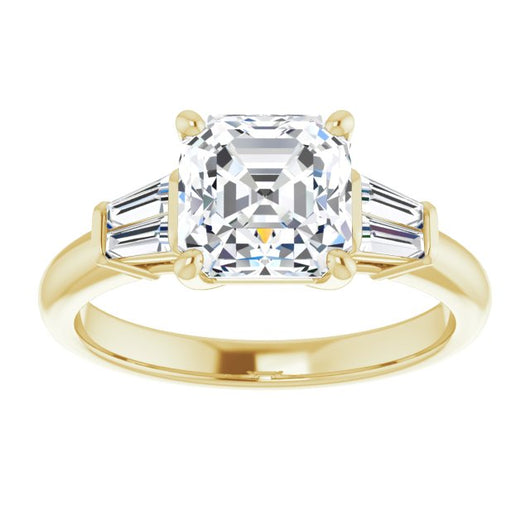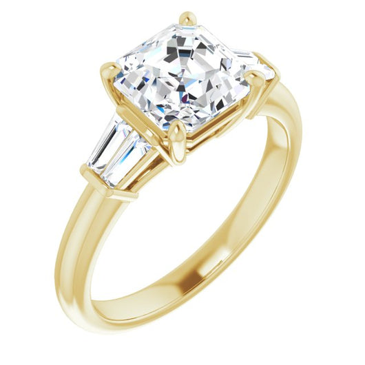 10K Yellow Gold Customizable 5-stone Asscher Cut Style with Quad Tapered Baguettes