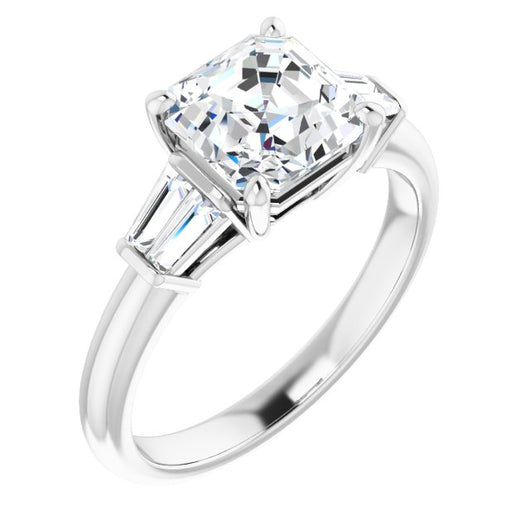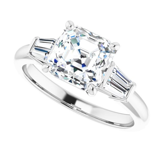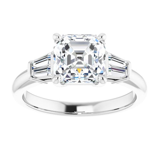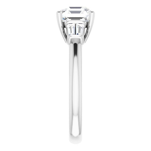 10K White Gold Customizable 5-stone Asscher Cut Style with Quad Tapered Baguettes