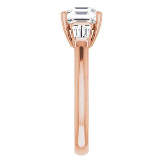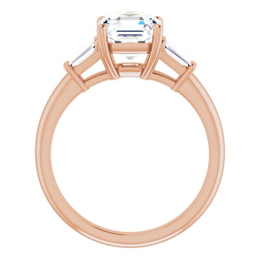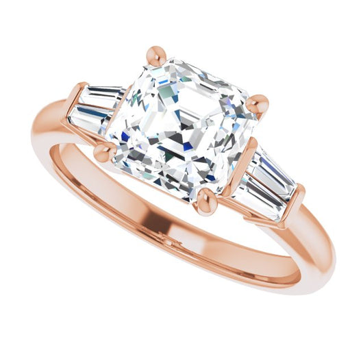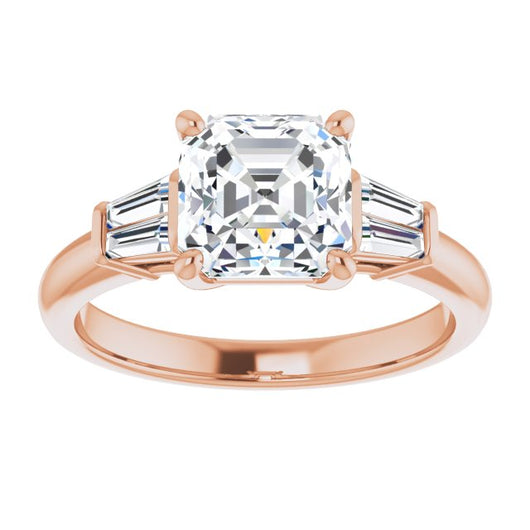 10K Rose Gold Customizable 5-stone Asscher Cut Style with Quad Tapered Baguettes