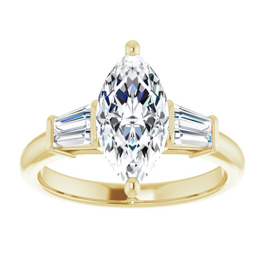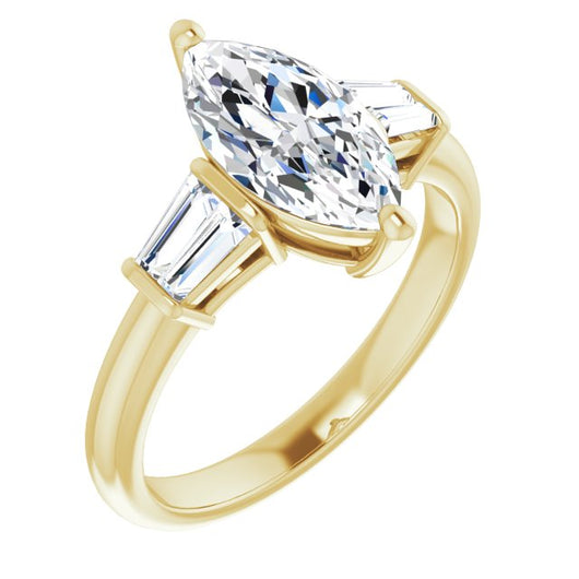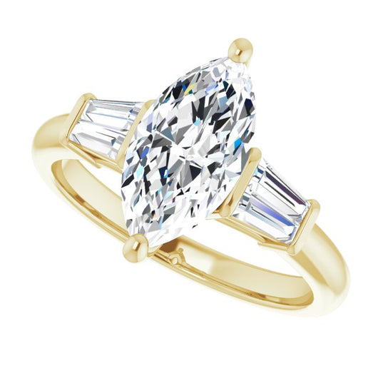 10K Yellow Gold Customizable 5-stone Marquise Cut Style with Quad Tapered Baguettes