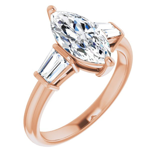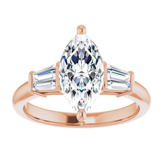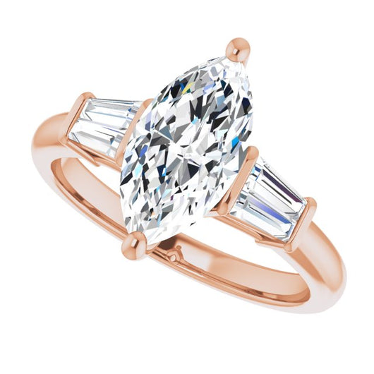 10K Rose Gold Customizable 5-stone Marquise Cut Style with Quad Tapered Baguettes