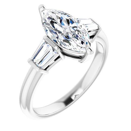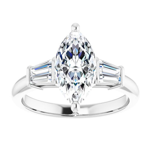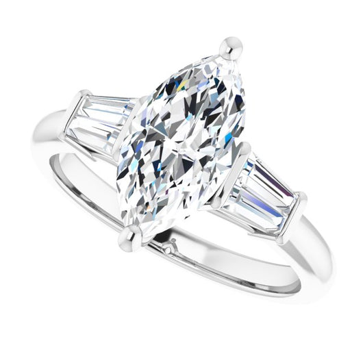 10K White Gold Customizable 5-stone Marquise Cut Style with Quad Tapered Baguettes