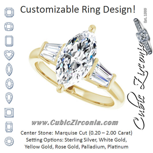Cubic Zirconia Engagement Ring- The Chloe (Customizable 5-stone Marquise Cut Style with Quad Tapered Baguettes)