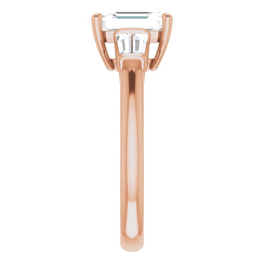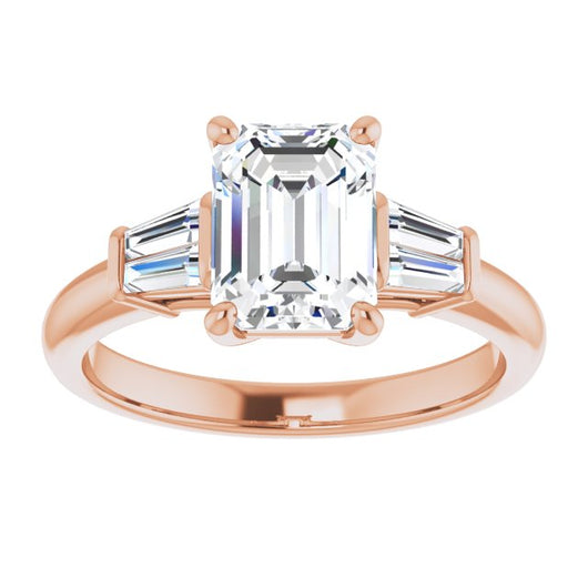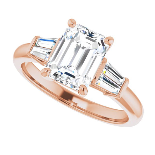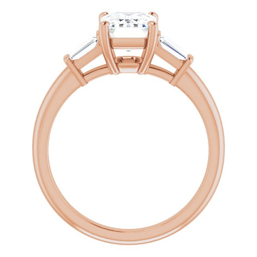 10K Rose Gold Customizable 5-stone Emerald/Radiant Cut Style with Quad Tapered Baguettes