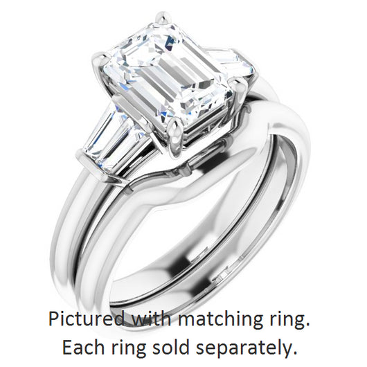 Center Stone Shape: Radiant Cut (as pictured with Emerald Cut). See this customizable ring set with other available center stone shapes here: customize setting.