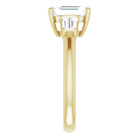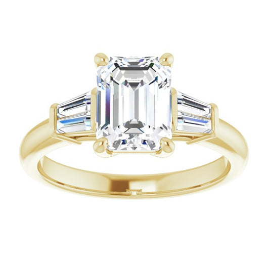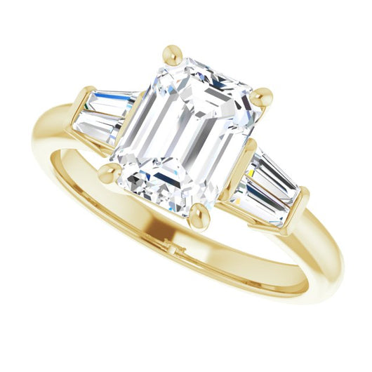 10K Yellow Gold Customizable 5-stone Emerald/Radiant Cut Style with Quad Tapered Baguettes
