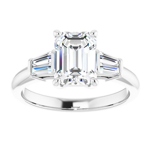 10K White Gold Customizable 5-stone Emerald/Radiant Cut Style with Quad Tapered Baguettes