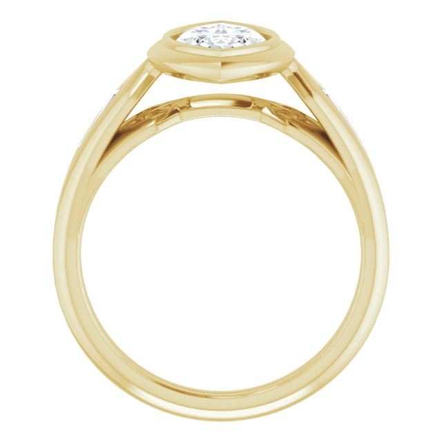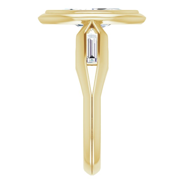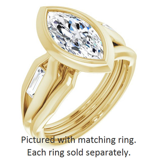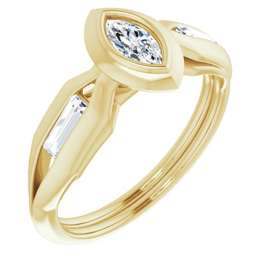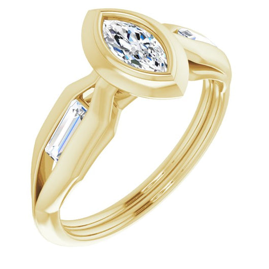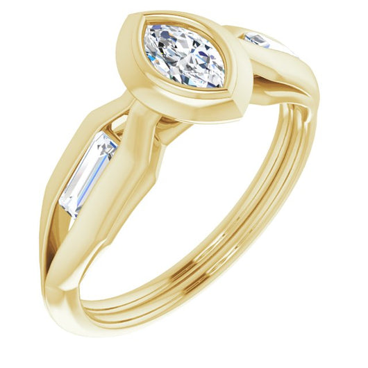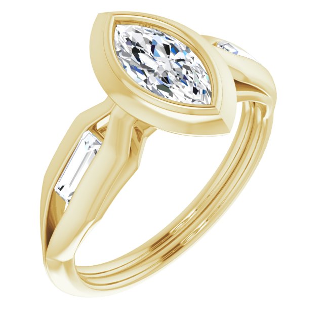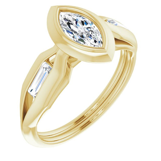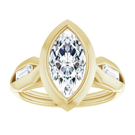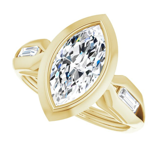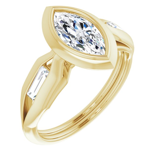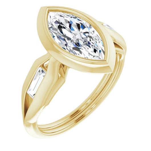 10K Yellow Gold Customizable Bezel-set Marquise Cut Design with Wide Split Band & Tension-Channel Baguette Accents