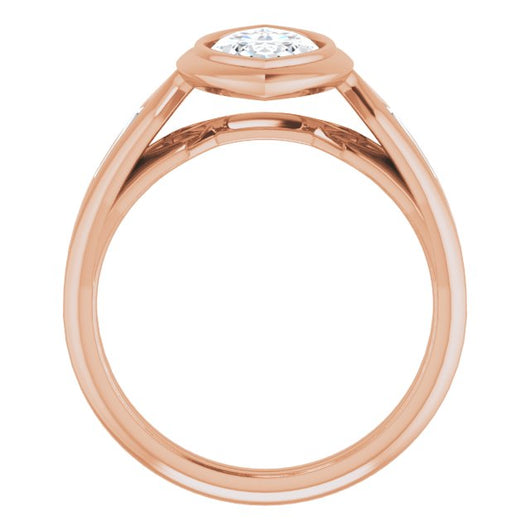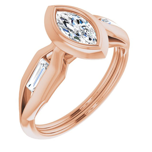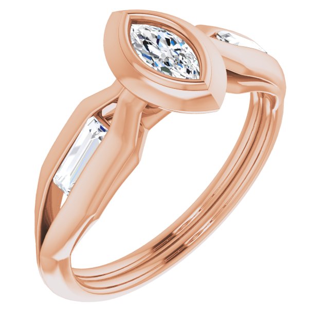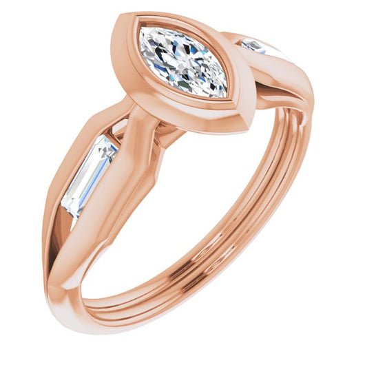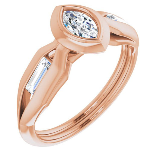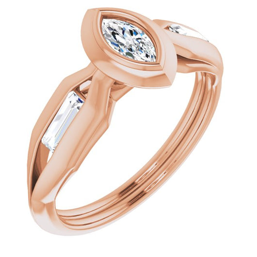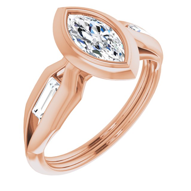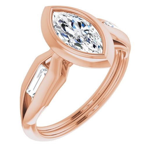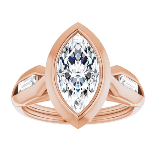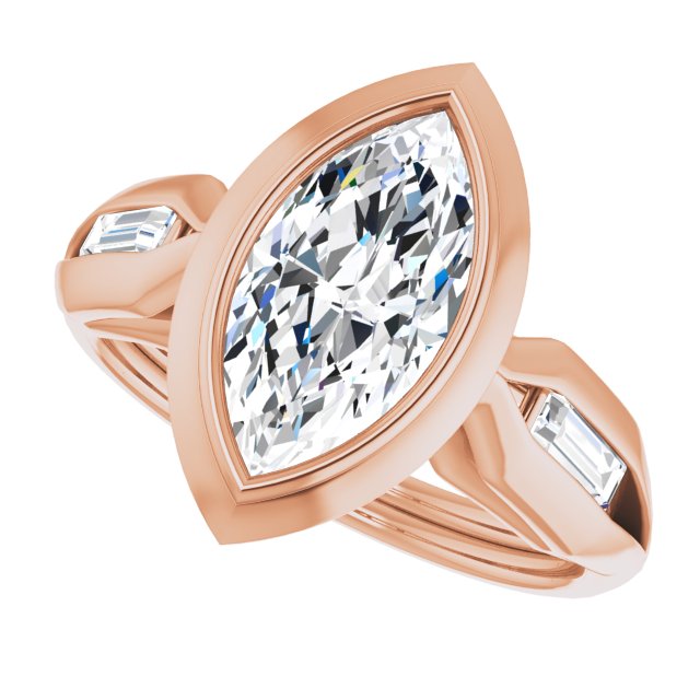 10K Rose Gold Customizable Bezel-set Marquise Cut Design with Wide Split Band & Tension-Channel Baguette Accents