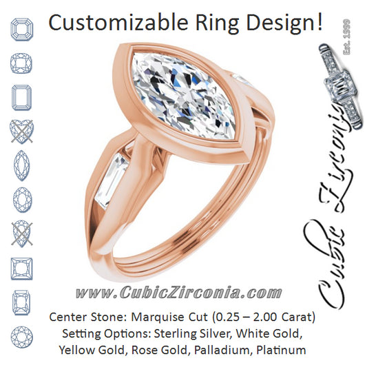 Cubic Zirconia Engagement Ring- The Claudelle (Customizable Bezel-set Marquise Cut Design with Wide Split Band & Tension-Channel Baguette Accents)