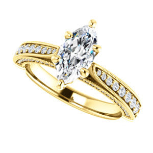 Center Stone Shape: Marquise Cut (as pictured). See this customizable ring set with other available center stone shapes here: customize setting.