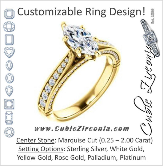 Cubic Zirconia Engagement Ring- The Claudia Jeanine (Customizable Marquise Cut Three Sided Band)