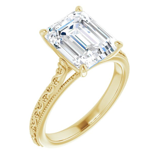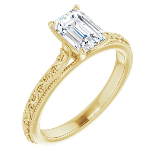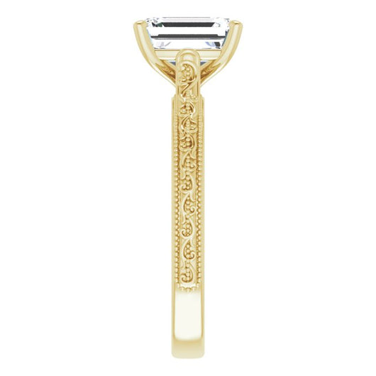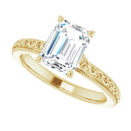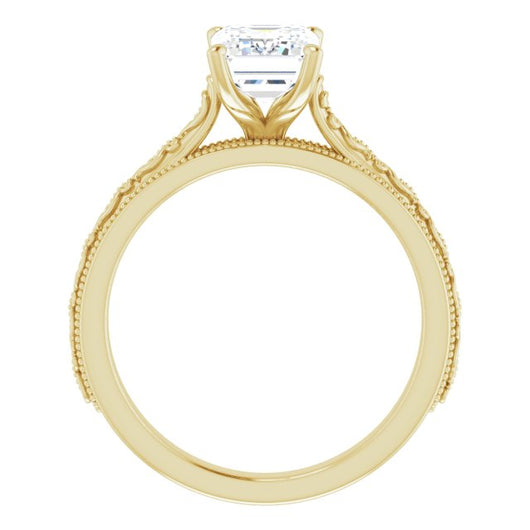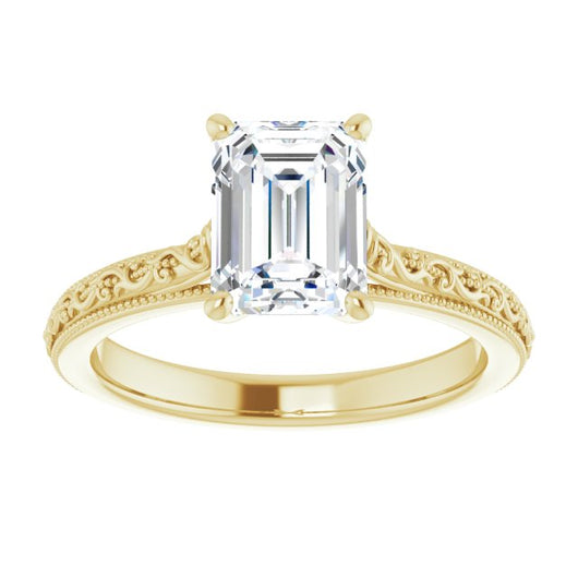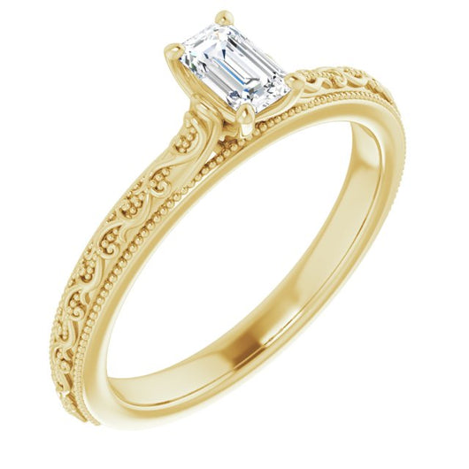 10K Yellow Gold Customizable Emerald/Radiant Cut Solitaire with Delicate Milgrain Filigree Band