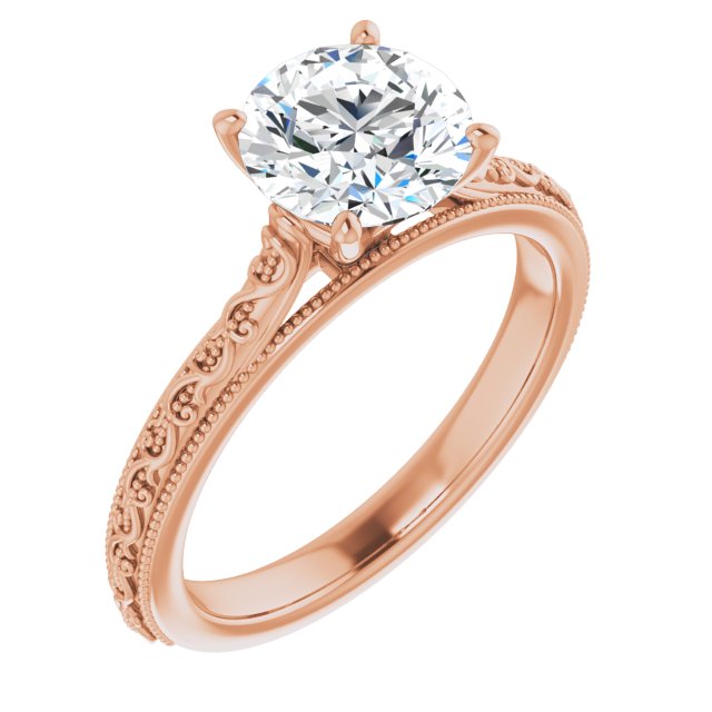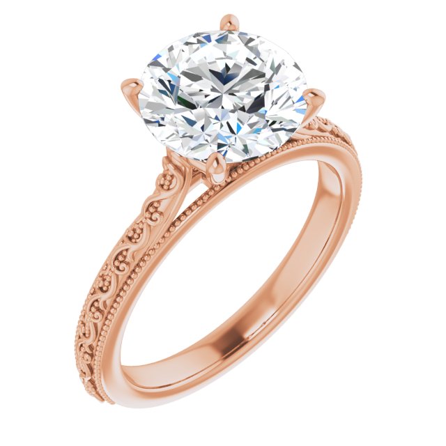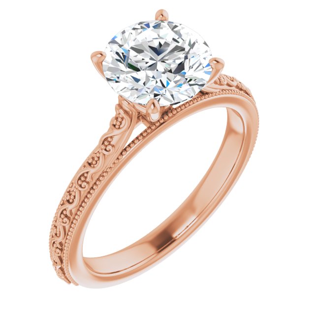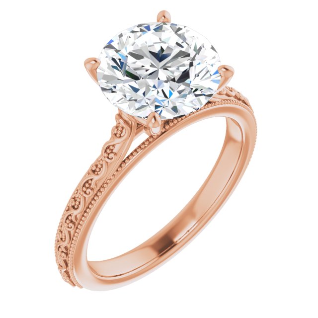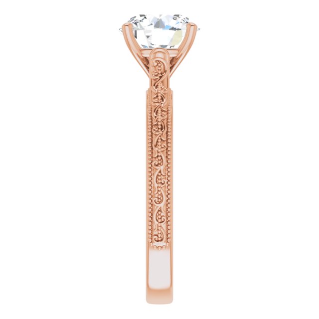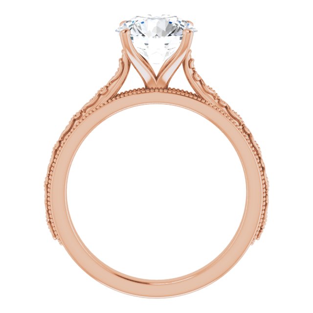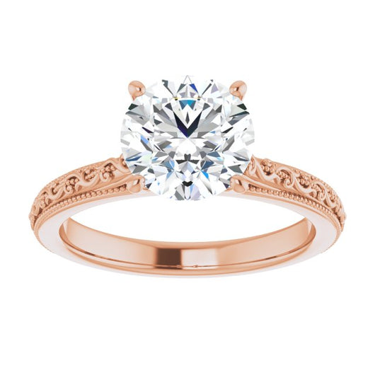 10K Rose Gold Customizable Round Cut Solitaire with Delicate Milgrain Filigree Band