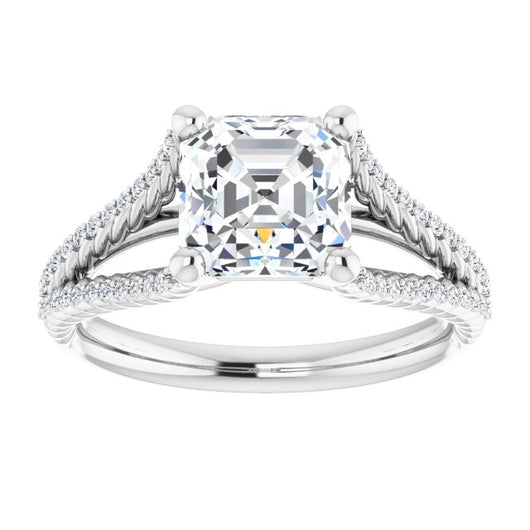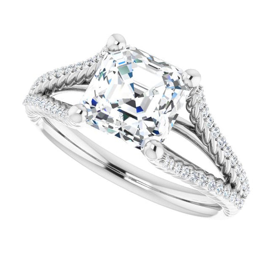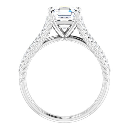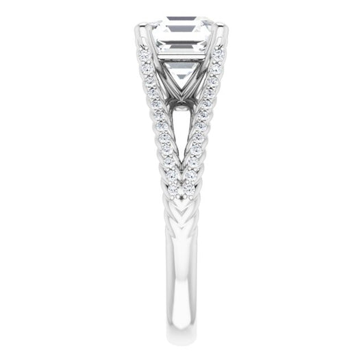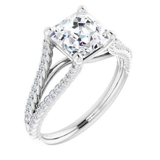 10K White Gold Customizable Asscher Cut Style with Split Band and Rope-Pavé