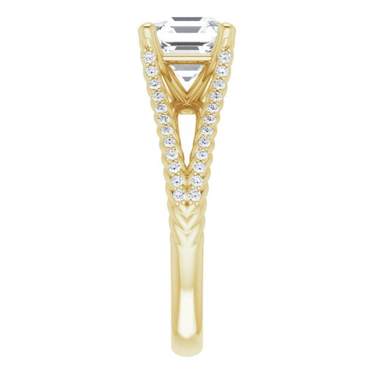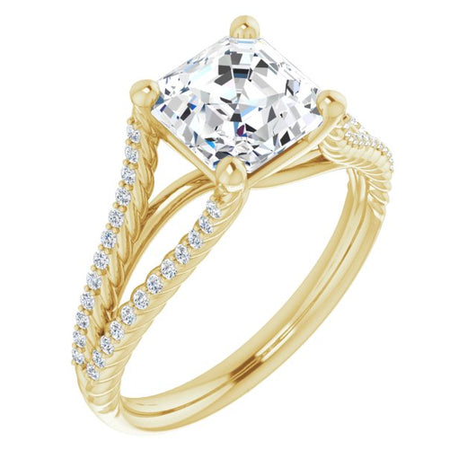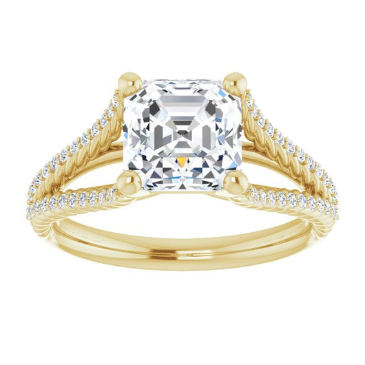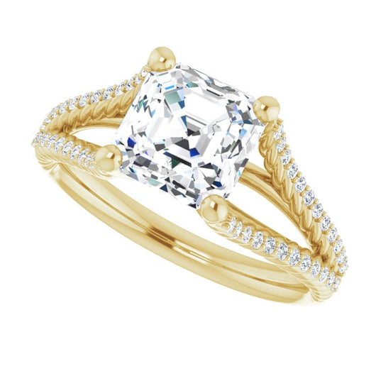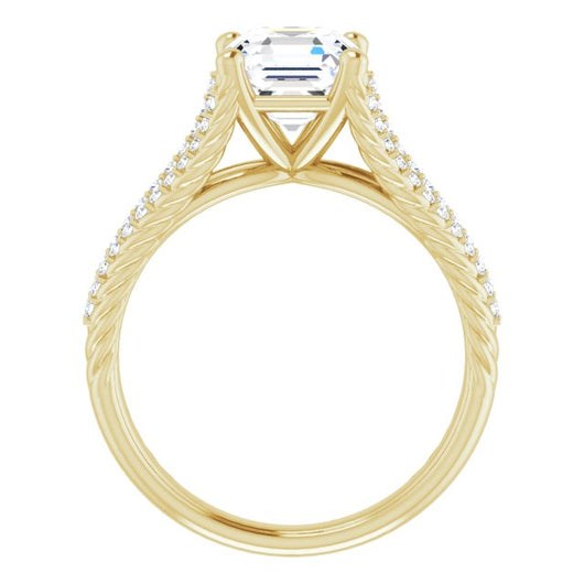 10K Yellow Gold Customizable Asscher Cut Style with Split Band and Rope-Pavé