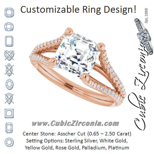Cubic Zirconia Engagement Ring- The Contessa (Customizable Asscher Cut Style with Split Band and Rope-Pavé)