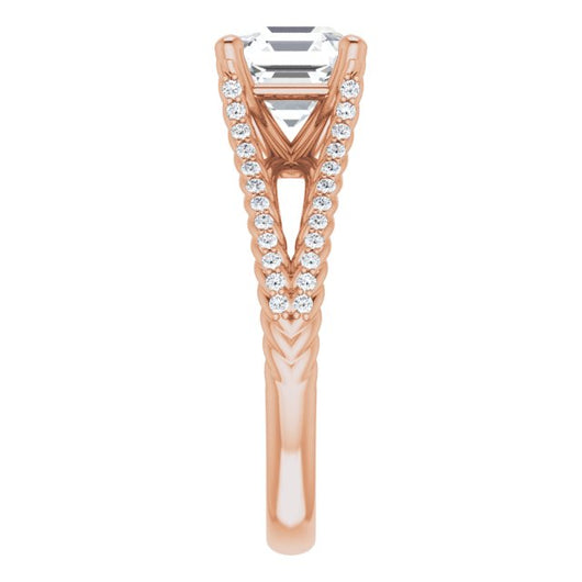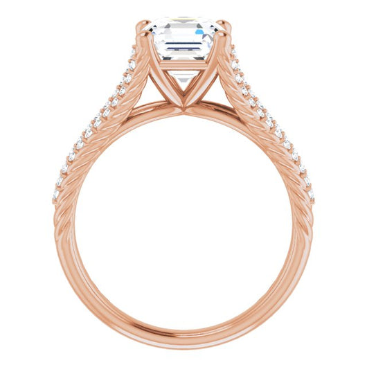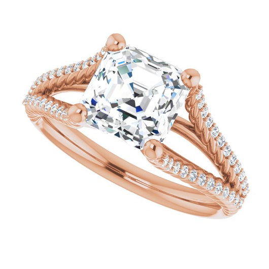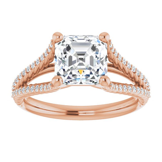 10K Rose Gold Customizable Asscher Cut Style with Split Band and Rope-Pavé
