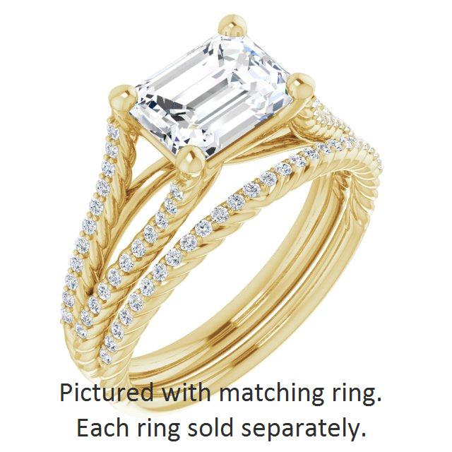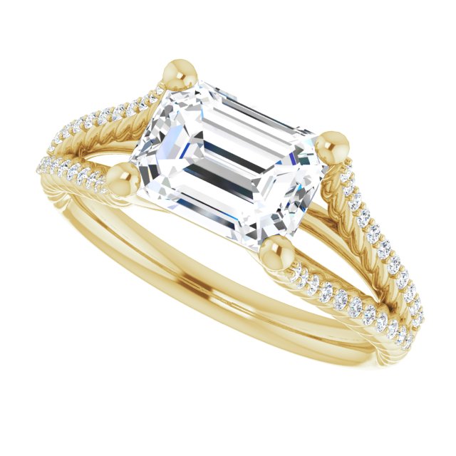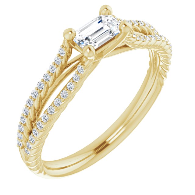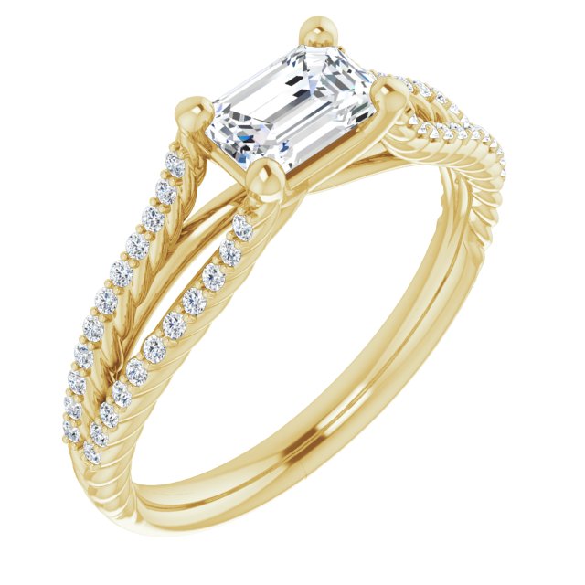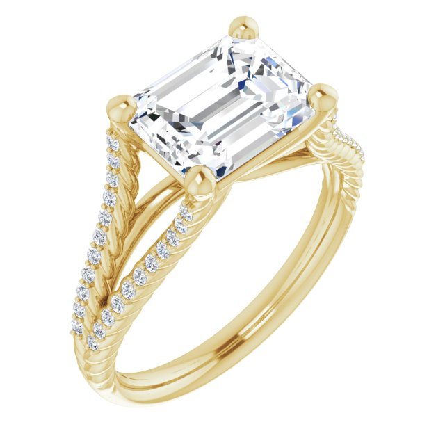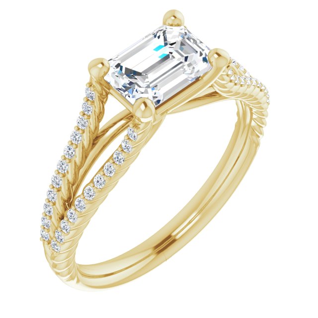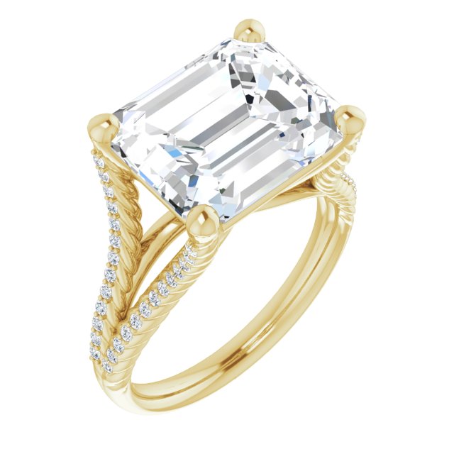 10K Yellow Gold Customizable Emerald/Radiant Cut Style with Split Band and Rope-Pavé