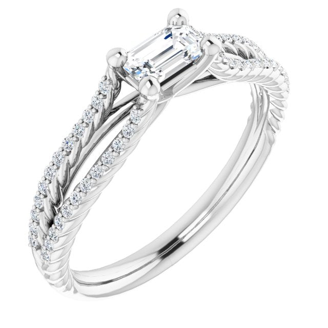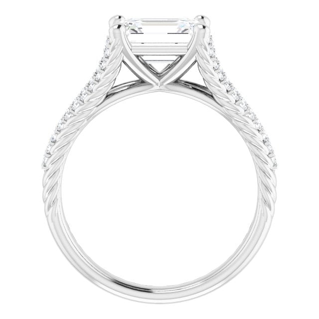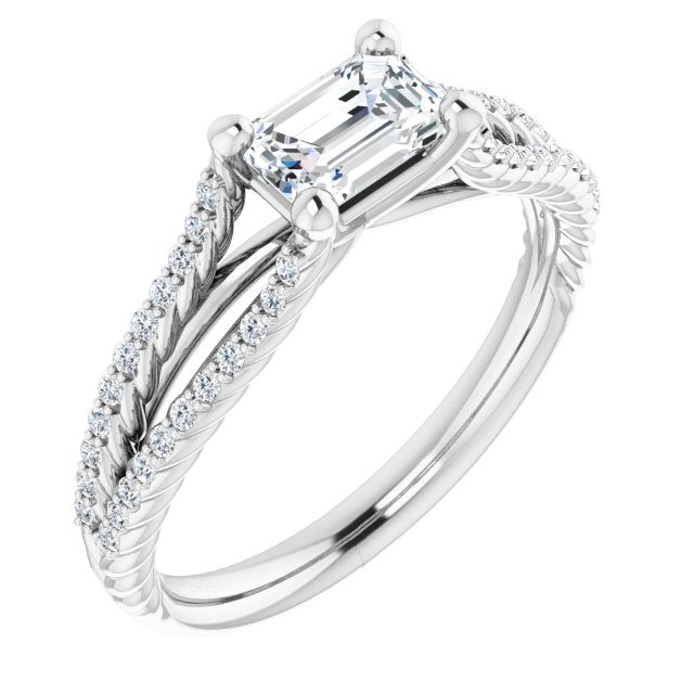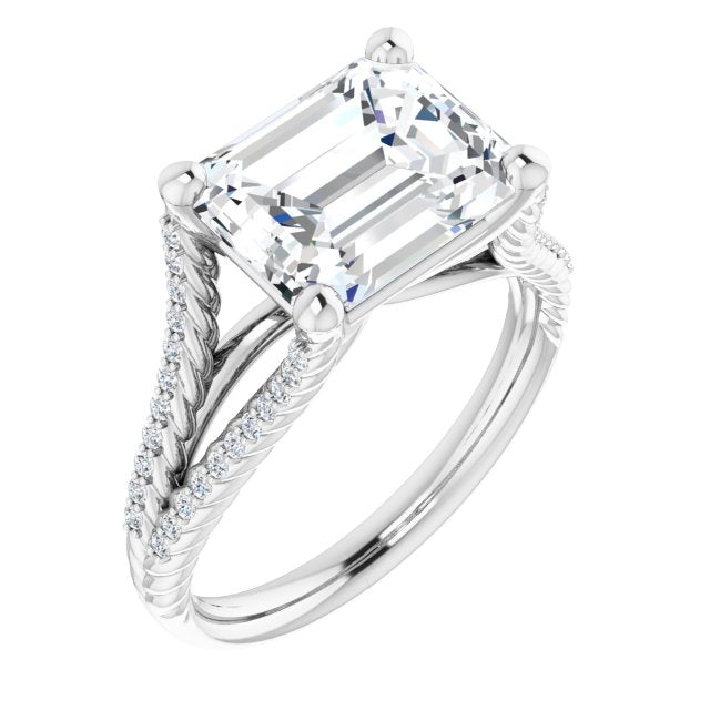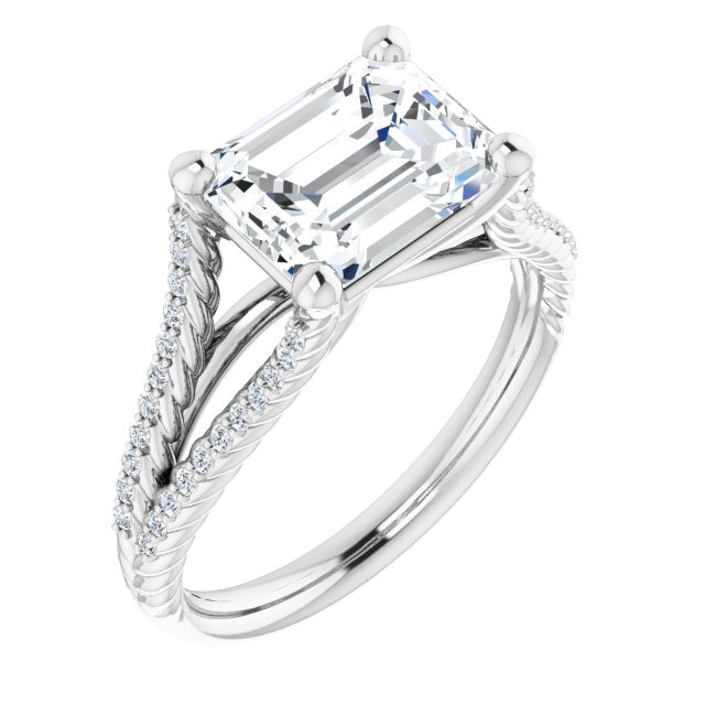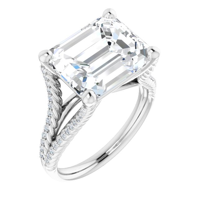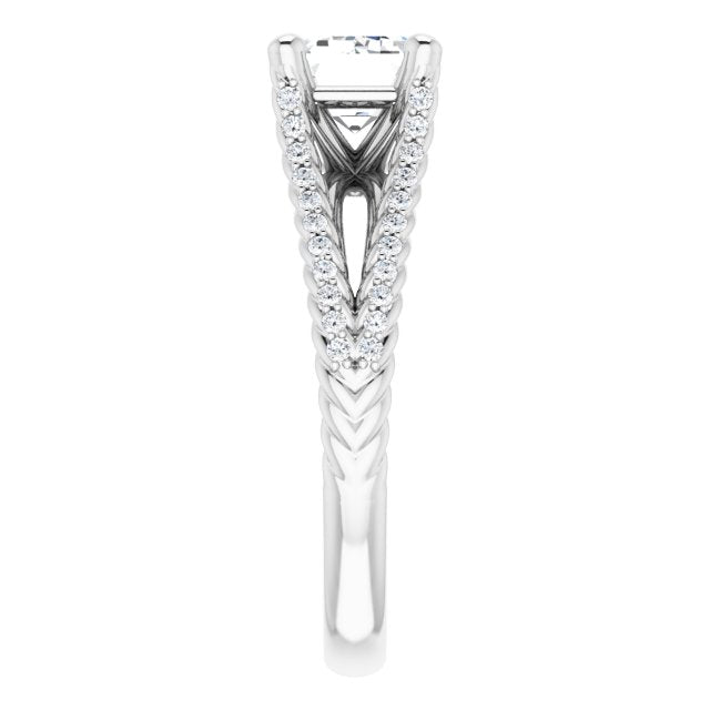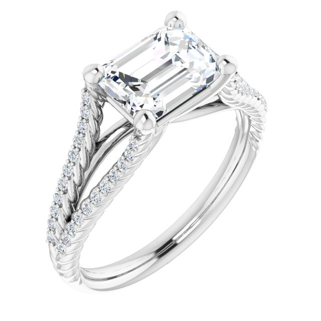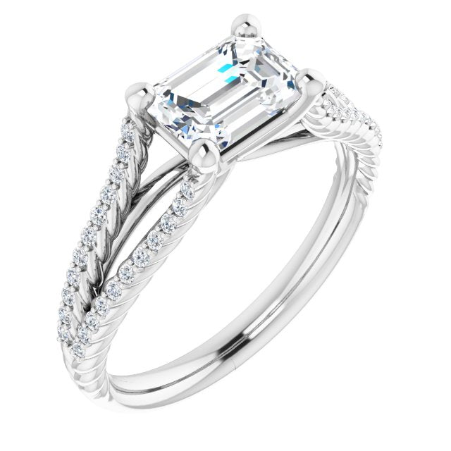 10K White Gold Customizable Emerald/Radiant Cut Style with Split Band and Rope-Pavé
