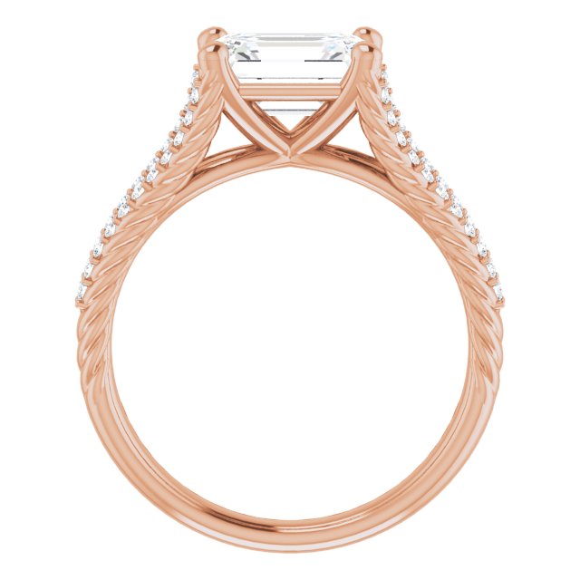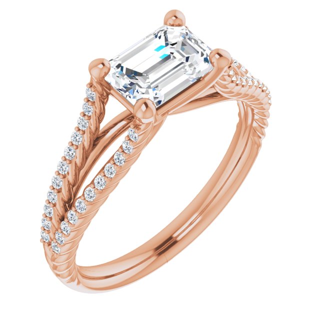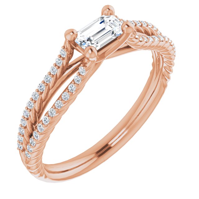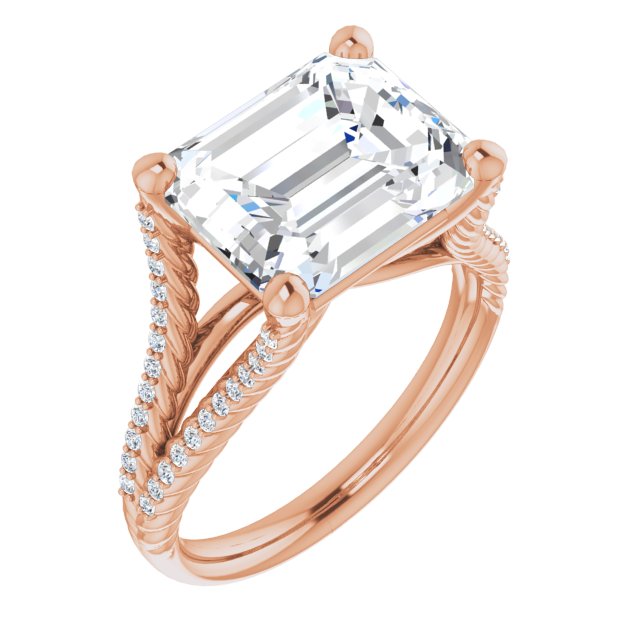 10K Rose Gold Customizable Emerald/Radiant Cut Style with Split Band and Rope-Pavé