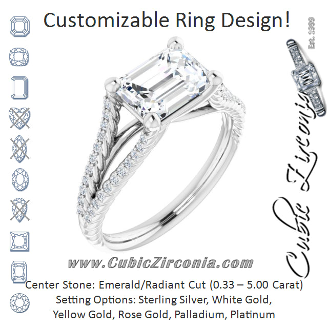 Cubic Zirconia Engagement Ring- The Contessa (Customizable Radiant Cut Style with Split Band and Rope-Pavé)