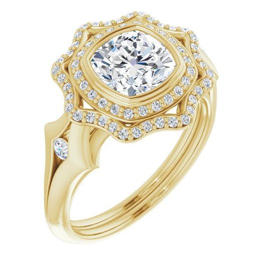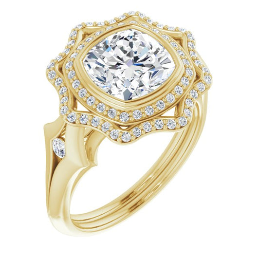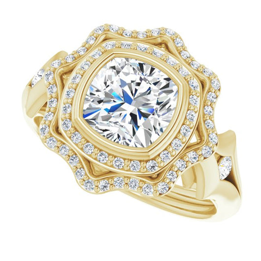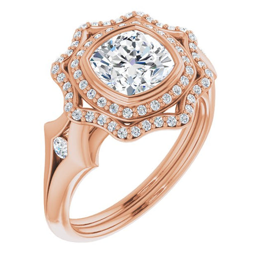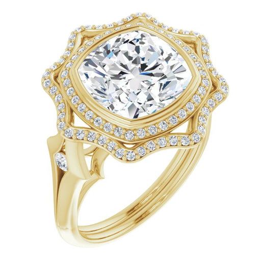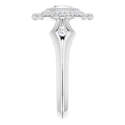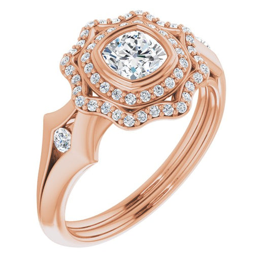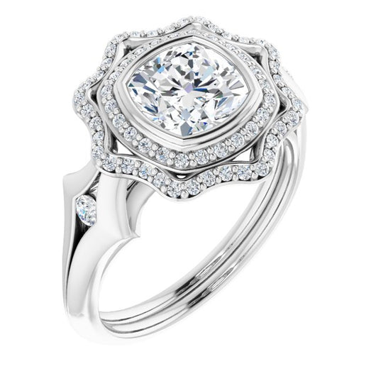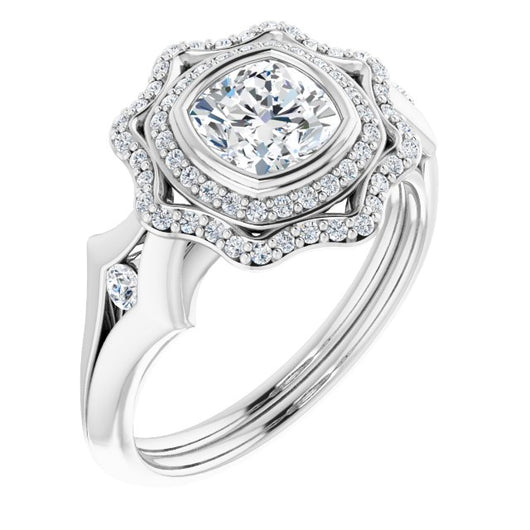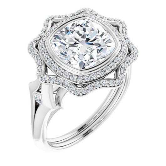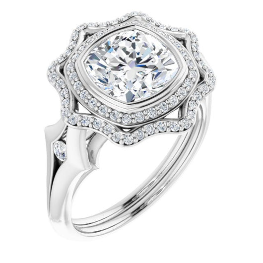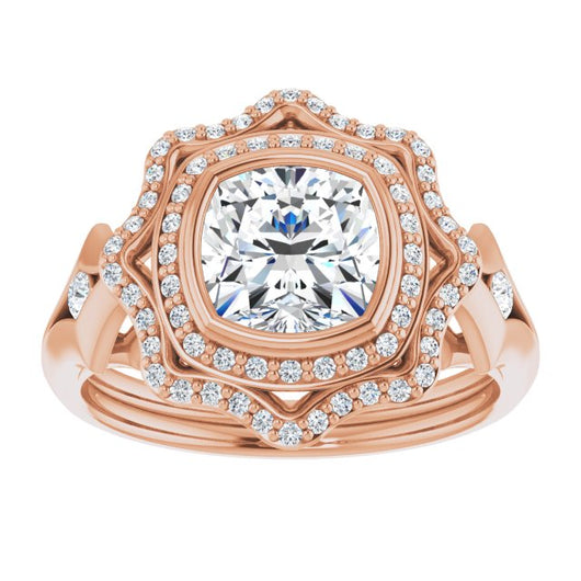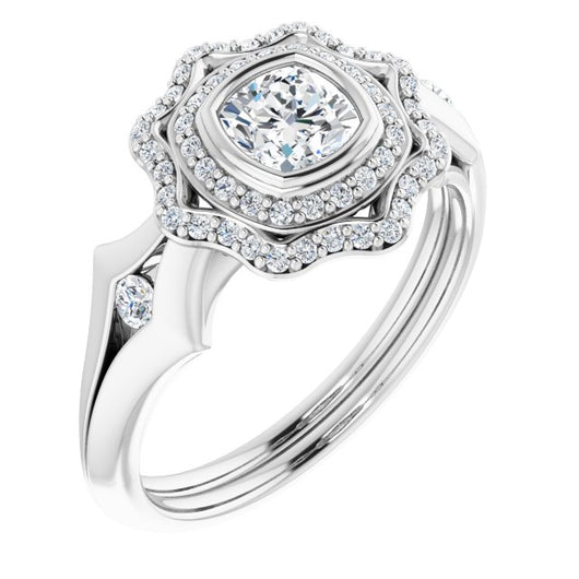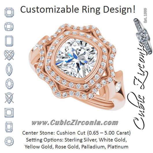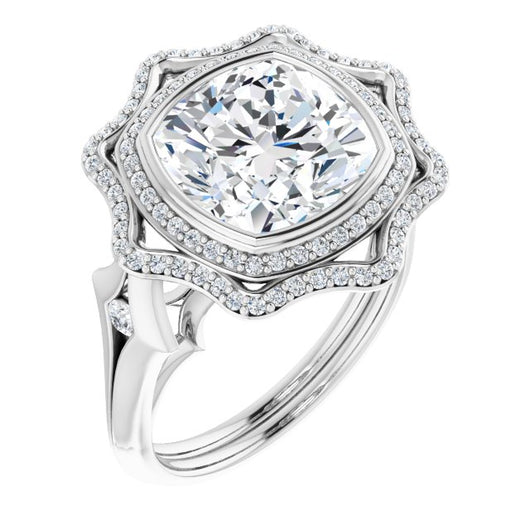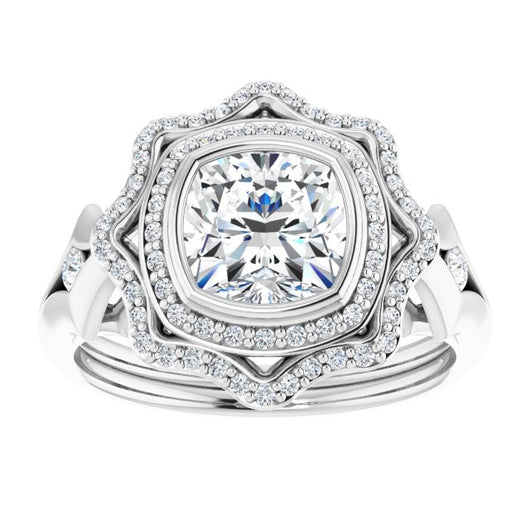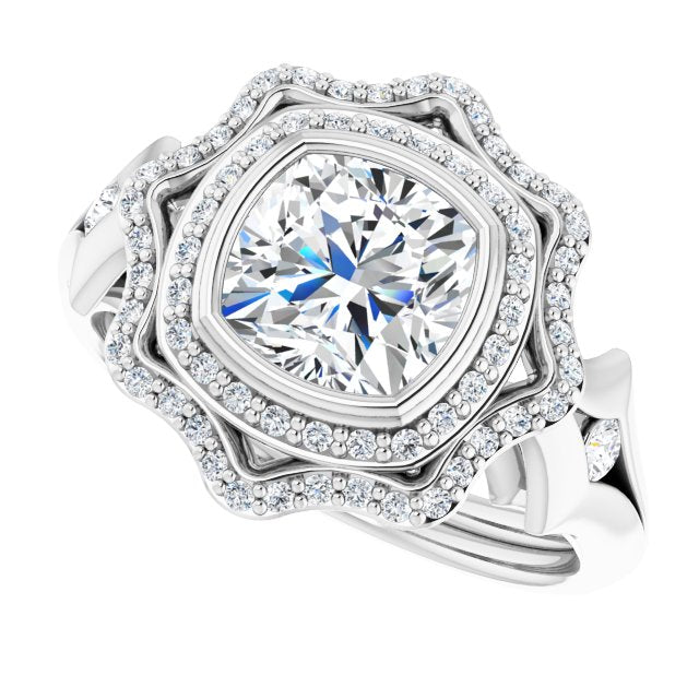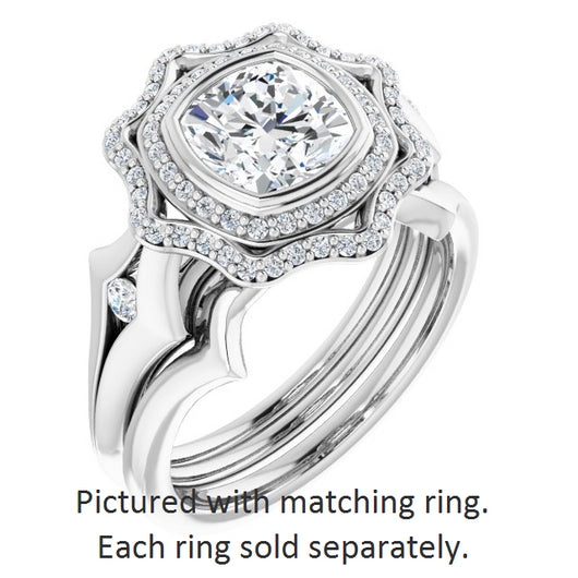 Center Stone Shape: Cushion Cut (as pictured). See this customizable ring set with other available center stone shapes here: customize setting.