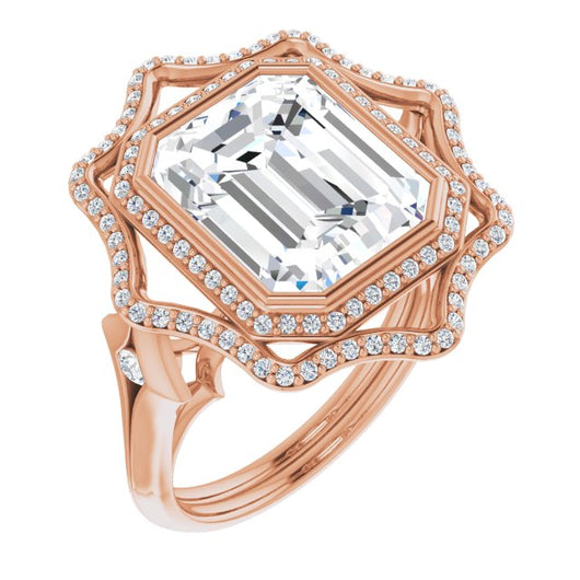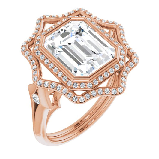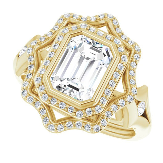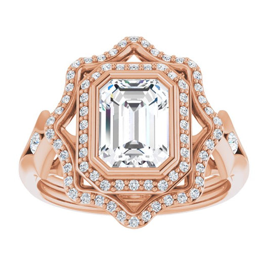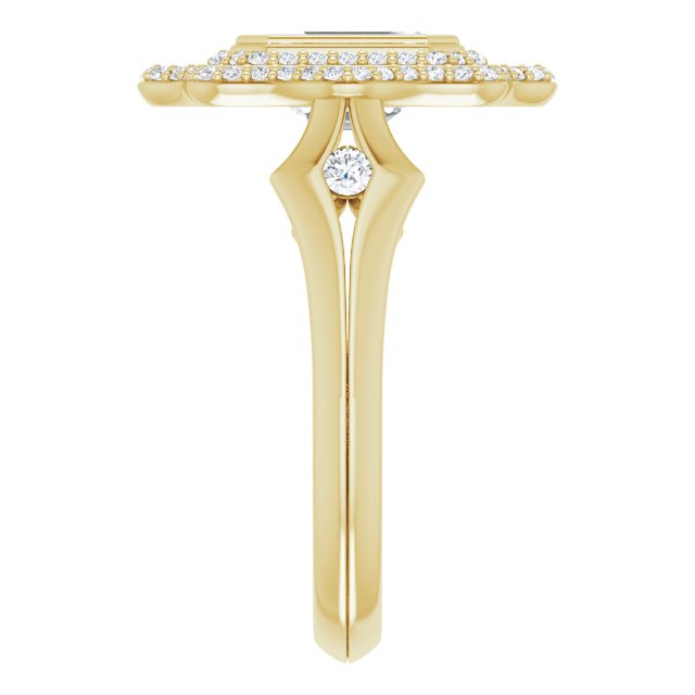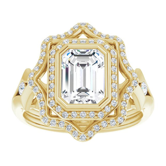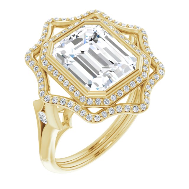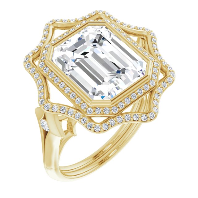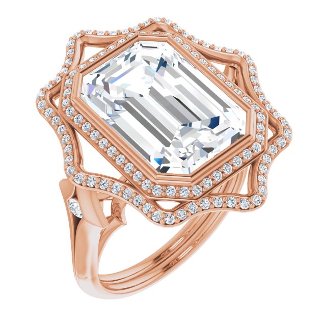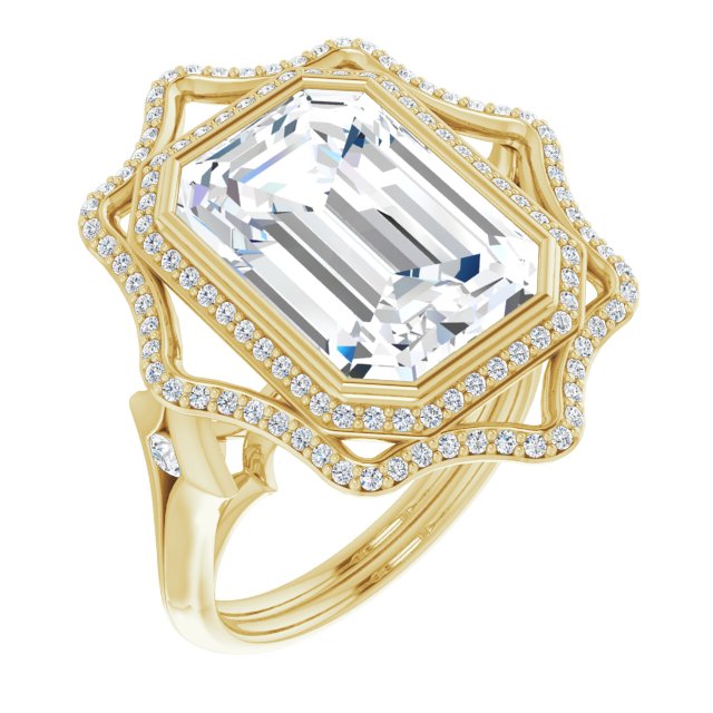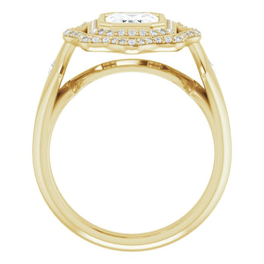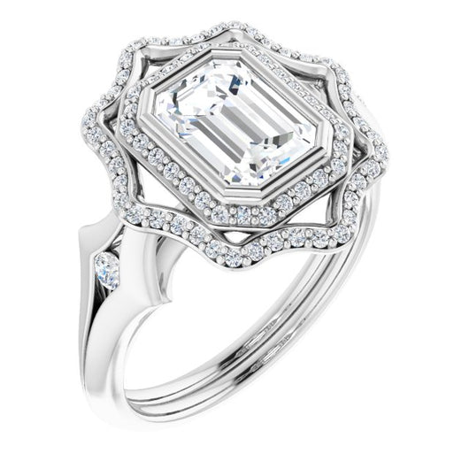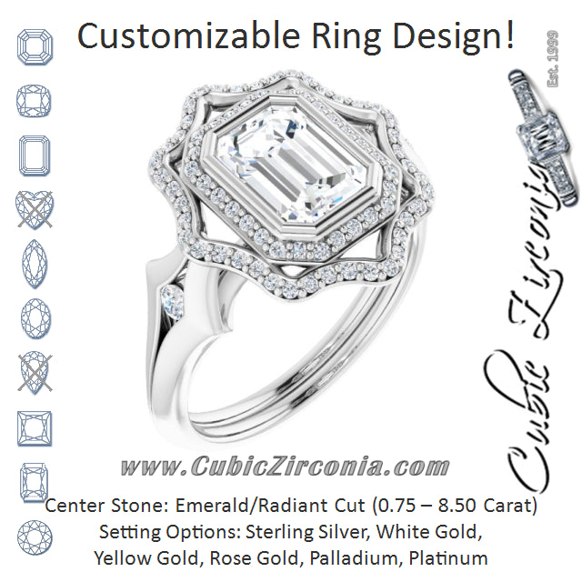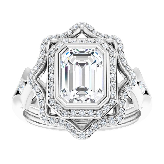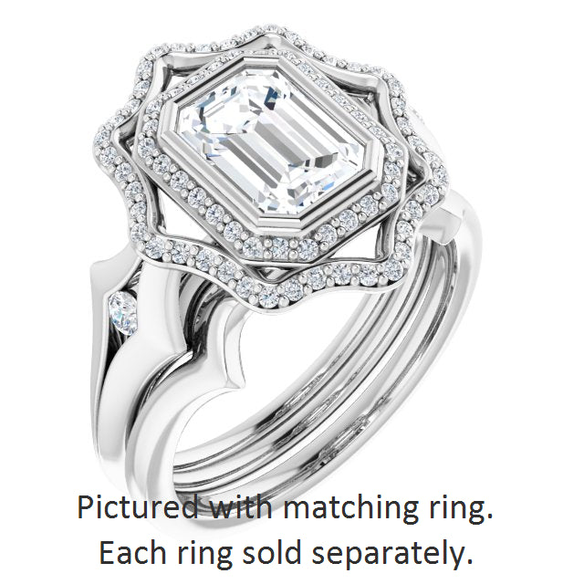 Center Stone Shape: Radiant Cut (as pictured with Emerald Cut). See this customizable ring set with other available center stone shapes here: customize setting.