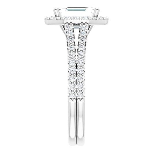 Center Stone Shape: Radiant Cut (as pictured with Emerald Cut). See this customizable ring set with other available center stone shapes here: customize setting.