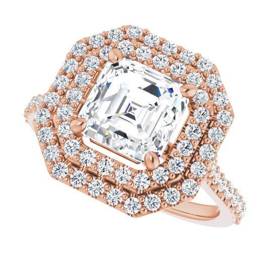 10K Rose Gold Customizable Double-Halo Asscher Cut Design with Accented Split Band